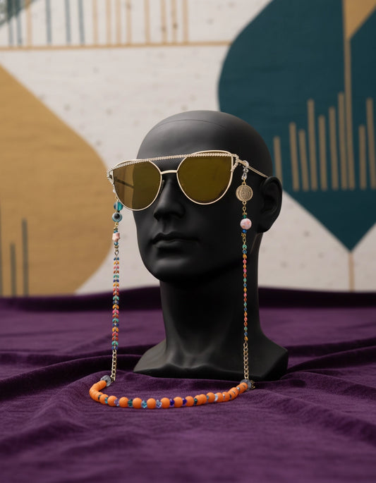 Sunlit Orange Pearls: Unique Handmade Eyewear Chain for Women
