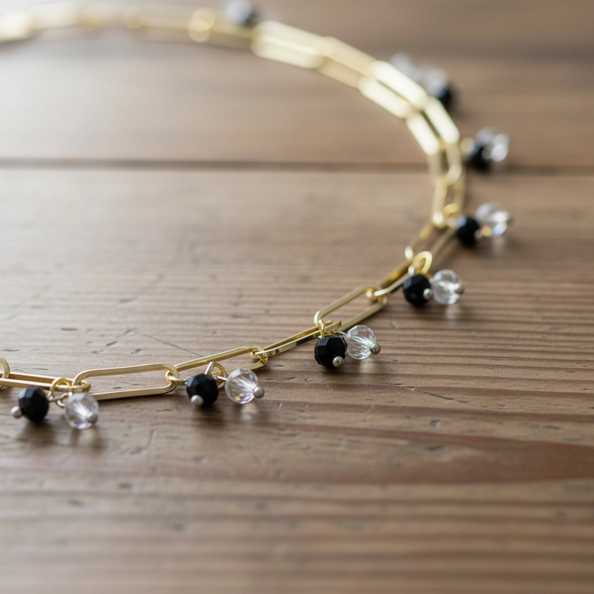 The 80 cm chain gives you the flexibility to have it hanged at the front or from the back.