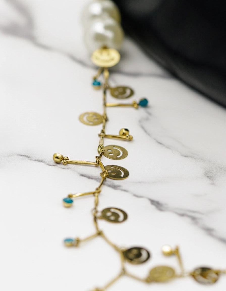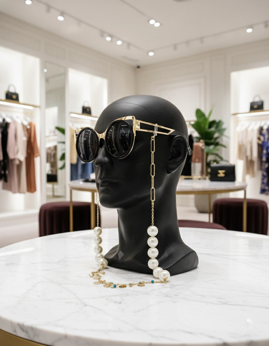 Elegant Gold and Pearl Sunglasses Stainless Steel Chain for Women