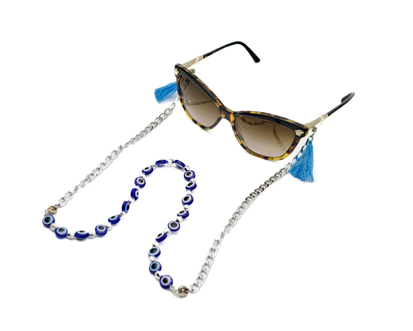 Elegant Blue Eyes Sunglasses Stainless Steel Chain for Women