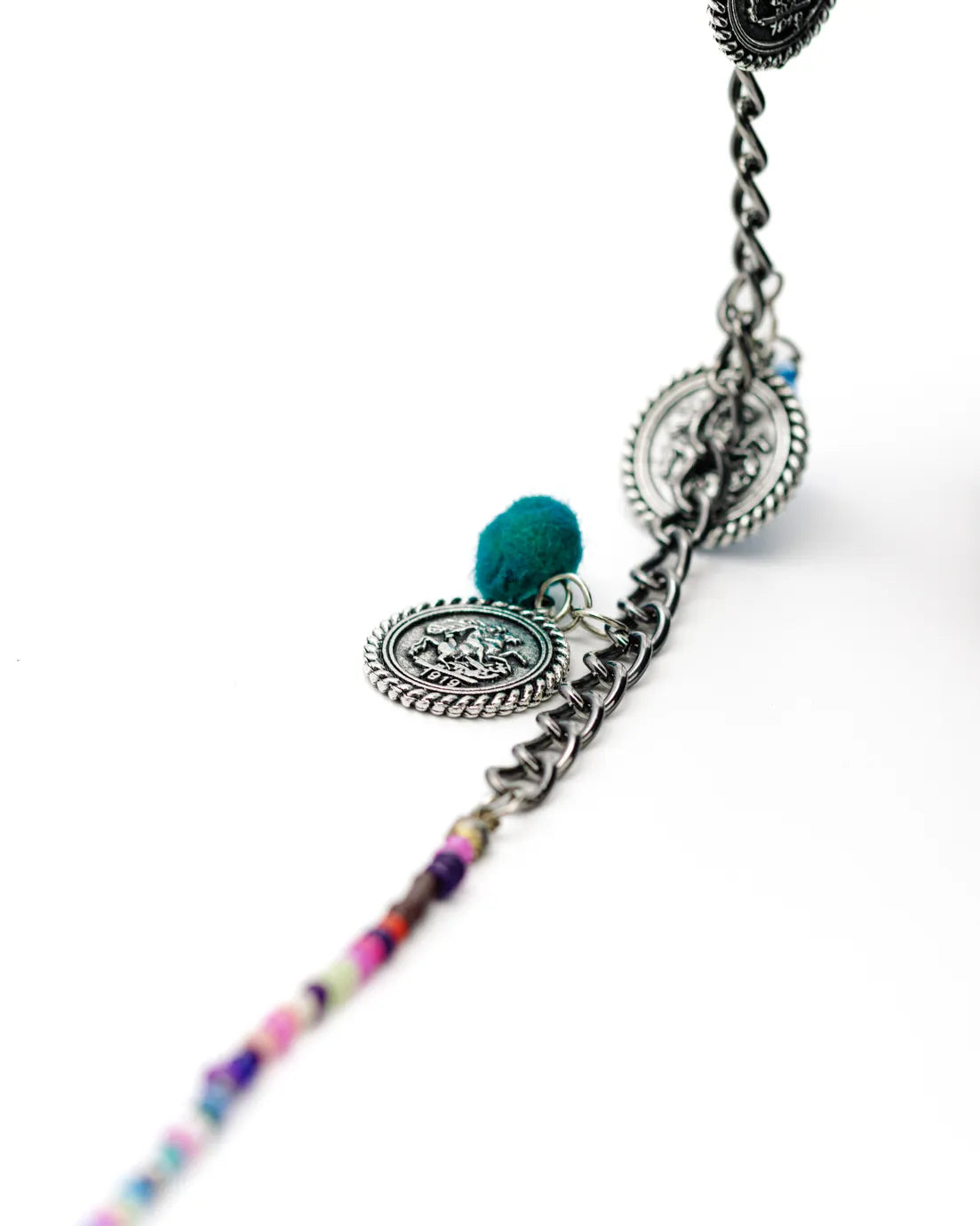The 90 cm chain gives you the flexibility to have it hanged at the front or from the back.