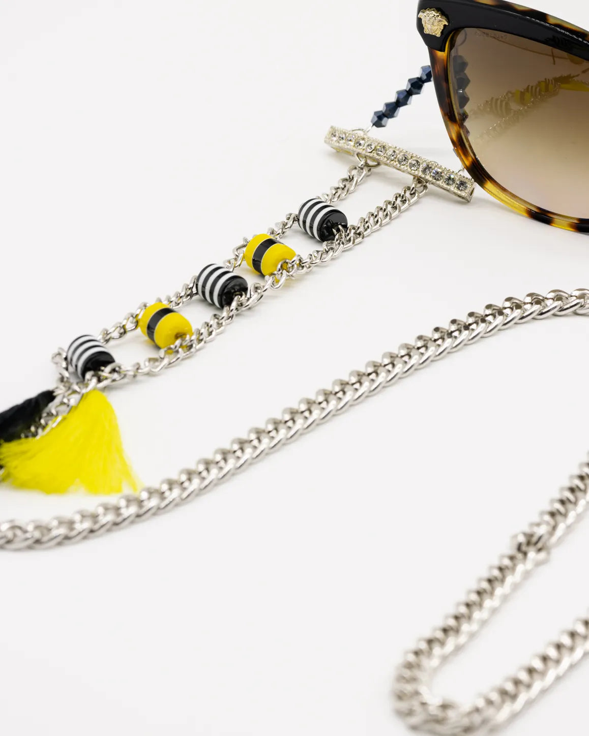 Upgrade your eyewear game with our Bee-Inspired Black and Yellow Stainless Steel Chain. Weighing just 36gm and measuring 80cm, this stylish accessory provides security and comfort for everyday use. Embrace your inner buzz with this eye-catching design today!
