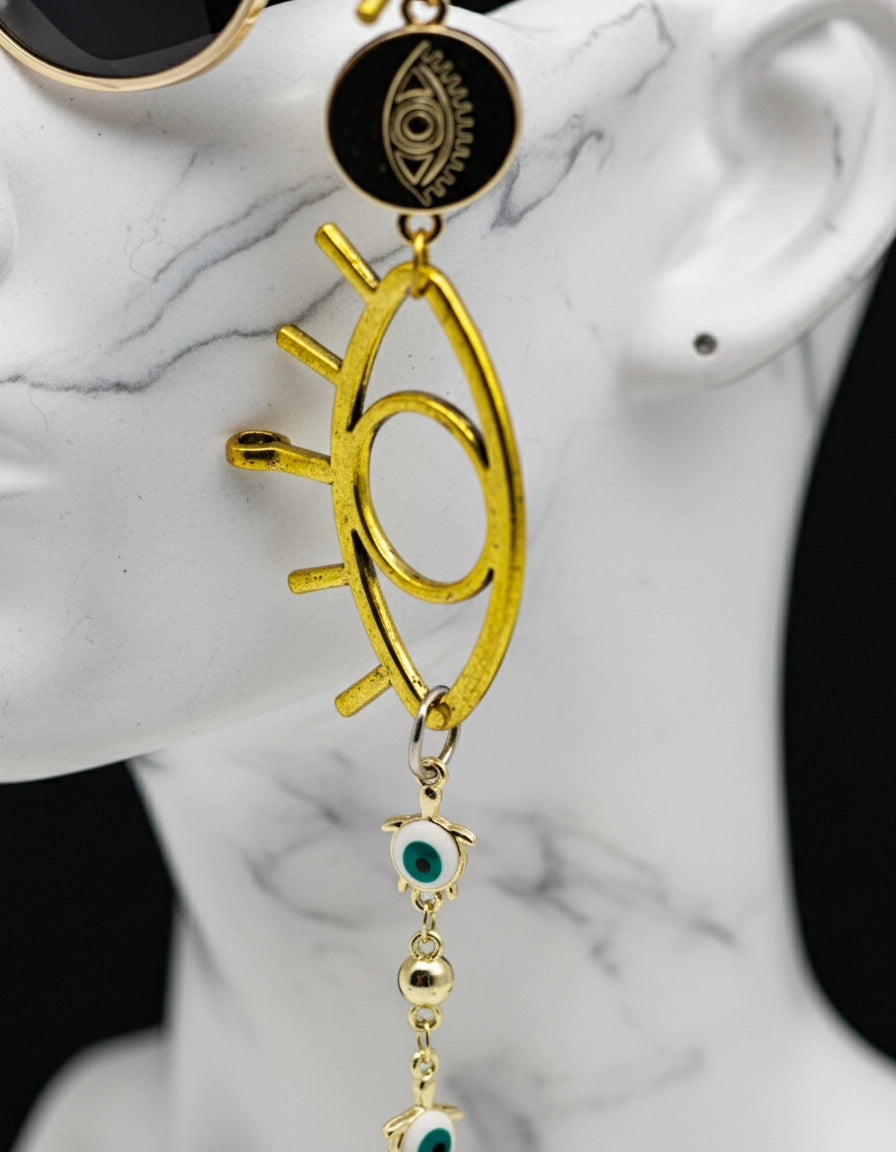 Elegant Golden Eye Sunglasses Stainless Steel Chain for Women
