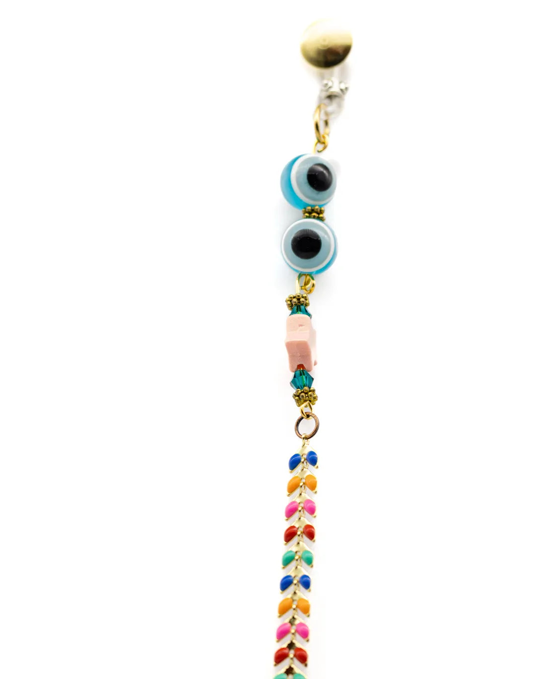 Discover a rare jewel that embodies style, elegance, and impeccable craftsmanship. Our handmade colored stainless steel eyewear chain, adorned with the famous Greek evil blue eye, is a testament to distinctive artistry and skill. Crafted exclusively for the discerning woman, this one-of-a-kind eyewear chain is more than an accessory. It’s a statement piece, a token of self-expression, and a tribute to your unique style. The subtlety of the colored steel chain, contrasted with the intensity of the blue eye, results in an accessory that's both captivating and unforgettable.