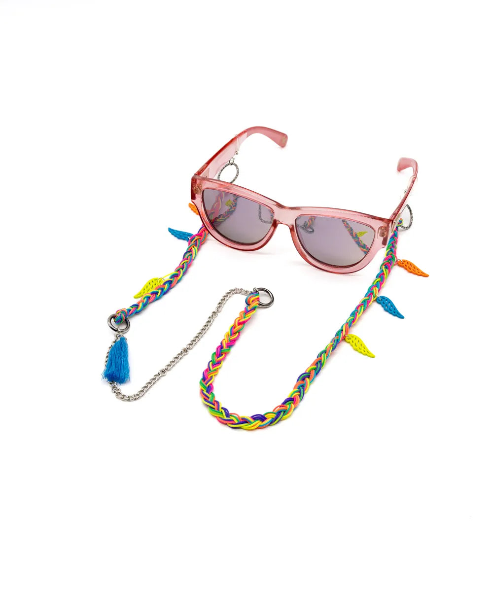 Introducing SpectraWings, the ultimate blend of style and functionality for your eyewear! This handcrafted, one-of-a-kind rainbow-colored funky eyewear chain is the perfect accessory to keep your glasses secure and stylish at all times. Measuring 80cm in length and weighing a mere 17 grams, SpectraWings is the ideal companion for those who love to express their unique personality.