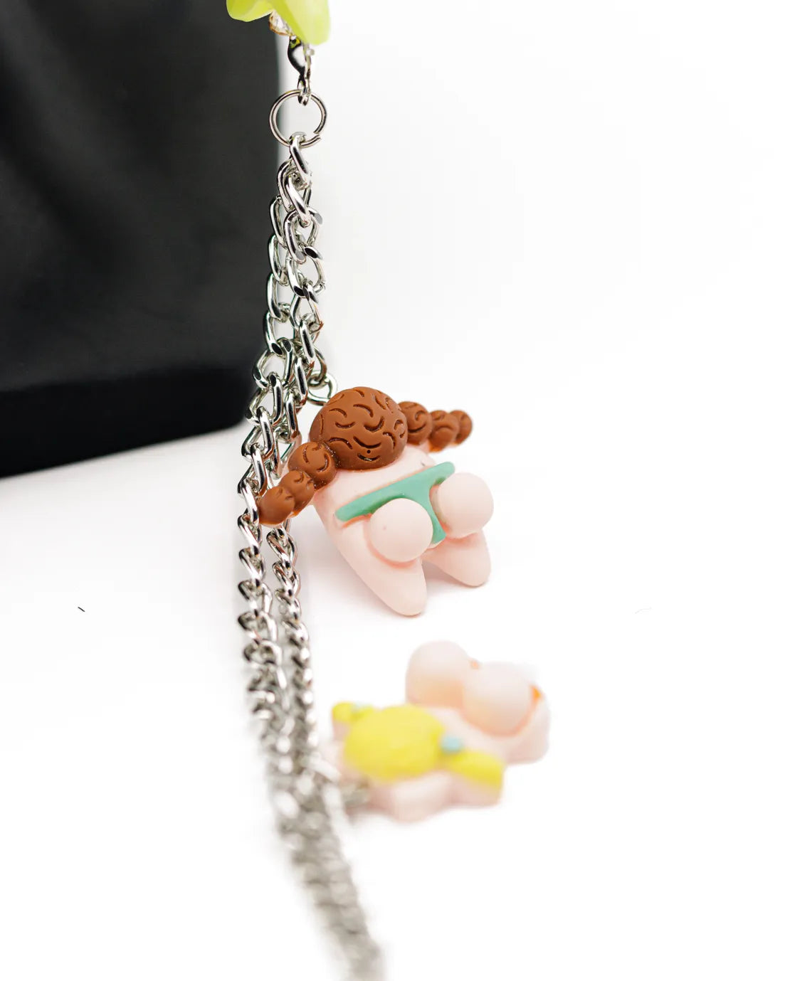 The 75 cm chain gives you the flexibility to have it hanged at the front or from the back.